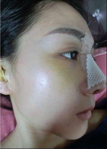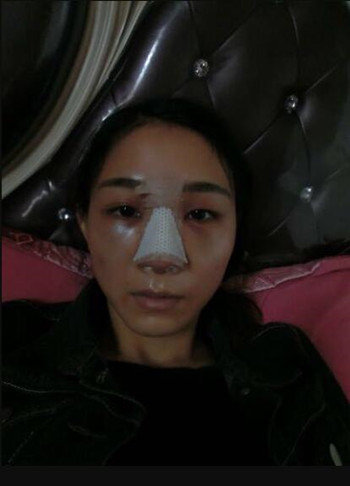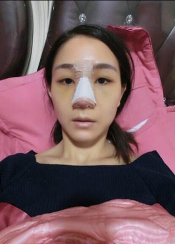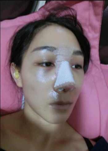 我手術(shù)時間安排在3月1號,取的是耳軟骨,手術(shù)的時候打的全麻,所以手術(shù)費用比一般的貴一些,畢竟我是一個怕痛的人?,F(xiàn)在給大家看看我手術(shù)后的第(一)天的情況,做了隆鼻整形手術(shù),受影響做大的就是眼睛,可以很直觀的看出來,我的眼睛腫的不像樣了, 周圍也泛黃,不過醫(yī)生說這些都是正常的教我不要擔(dān)心。