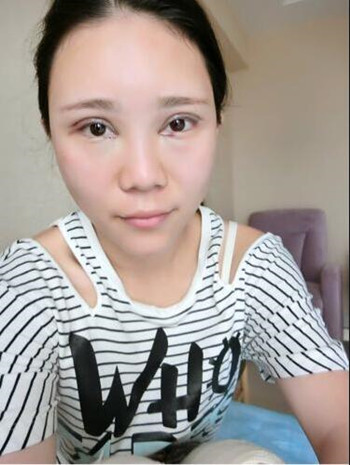 手術(shù)后的第十天,額頭和臉頰摸起來還有點硬,脂肪被吸收了一些,不過沒什么大礙。眼睛有一點輕微的腫,每天都在做冰敷和睜眼練習(xí),這樣會好的更快,果也會更好的!
