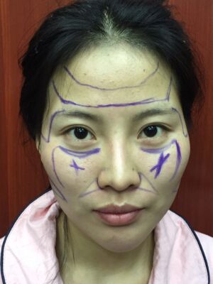 醫(yī)生在我臉上畫了線,要填充的部位太多了,除了下巴,都算是全臉填充了吧。