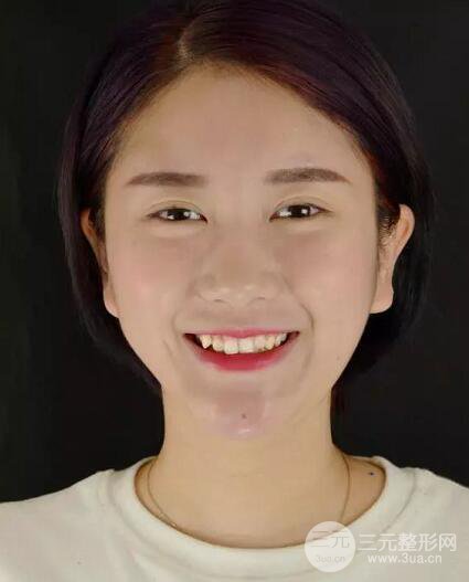 這是拔除四顆雙尖牙后 原本不對稱的牙弓現(xiàn)在已經(jīng)對稱 中線也調(diào)整到正常位置